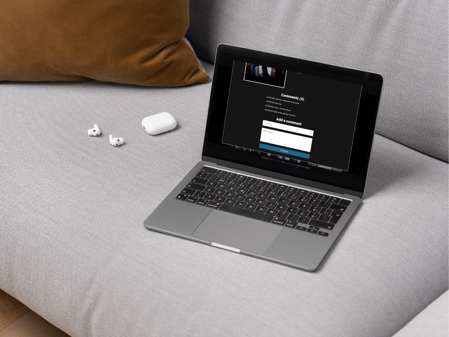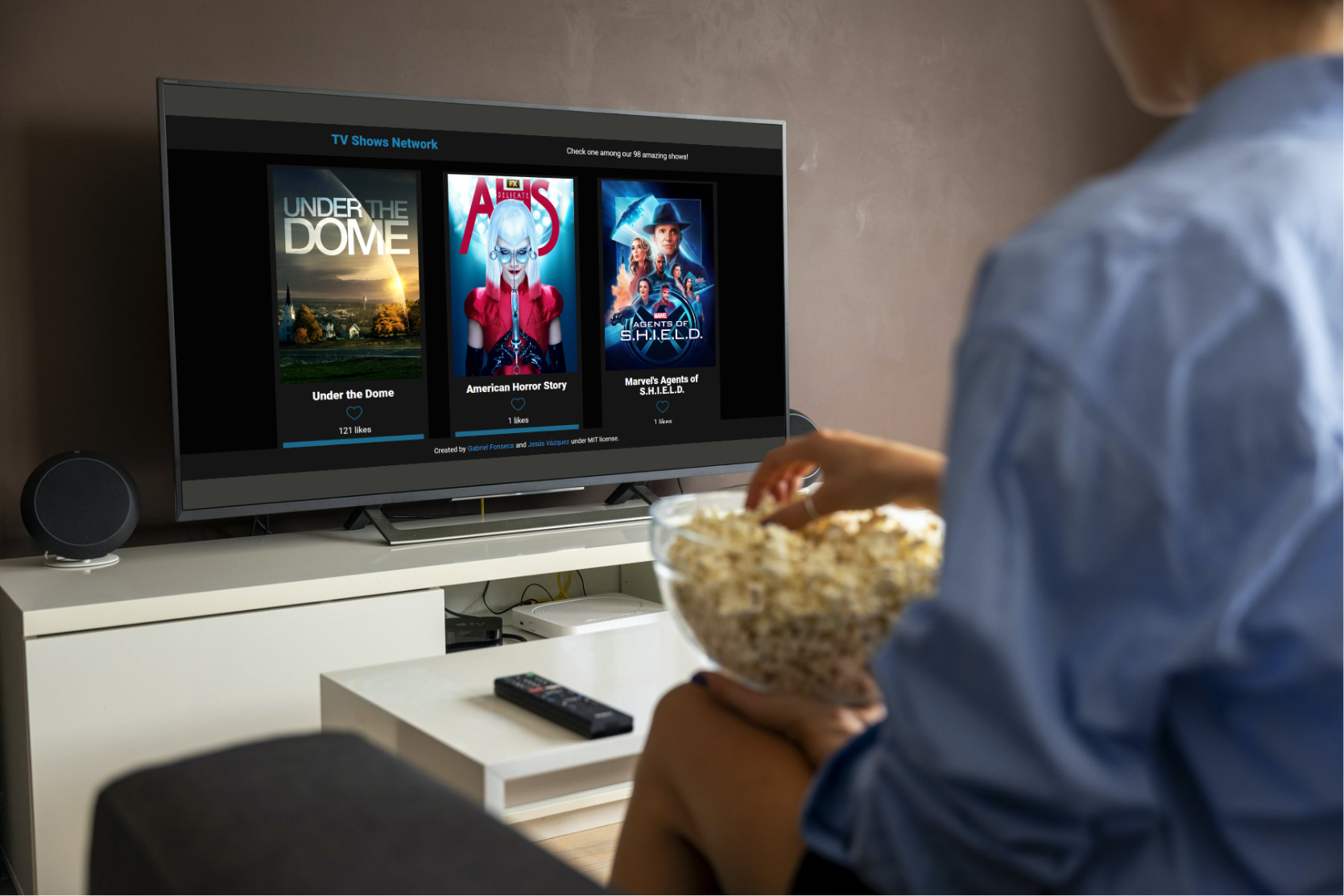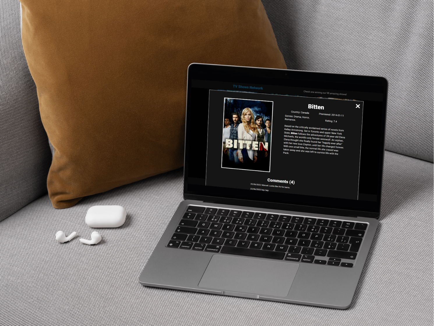 As mentioned, the site allows users to find, like, and comment on different TV shows. It fetches the catalog from the TVMaze API and uses the Involvement API to host comments & likes.